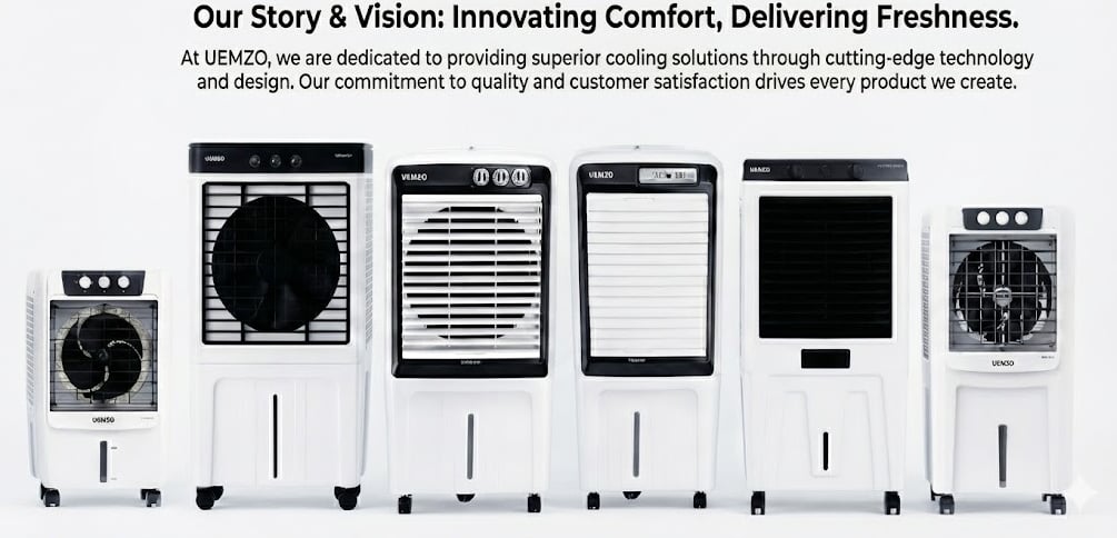 Uemzo air coolers have established a significant presence in the Indian market by focusing on high-performance evaporative cooling tailored for dry and arid climates. Manufactured by Uemzo Electrical and Electronics in Rajasthan, these units are recognized for their robust build quality, often featuring shockproof fiber bodies and premium toughened glass tops that add a modern aesthetic to the traditional air cooler. The brand distinguishes itself by offering exceptionally high water tank capacities, with many models ranging from 90 to 150 liters. This high capacity is specifically designed to provide uninterrupted cooling throughout the night or across long working hours without the need for constant refilling, making them a practical choice for both residential and commercial spaces.